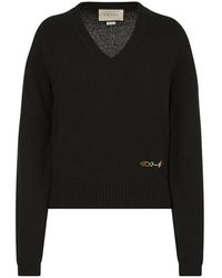 V-hals Wolsweater Met Lyre - Blauw