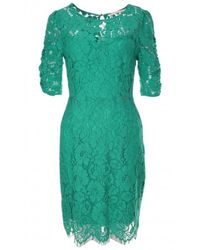Knee Length Lace Ruffled Dress - Groen