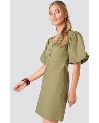 Short Puff Sleeve Button Up Dress - Groen