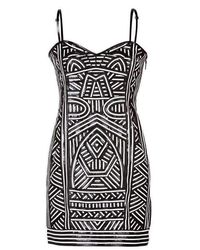 Patterned Strapless Dress - Zwart