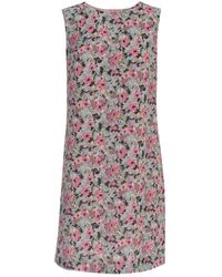 Round Neck Sleeveless Tunic Dress With Flowers Printing - Groen